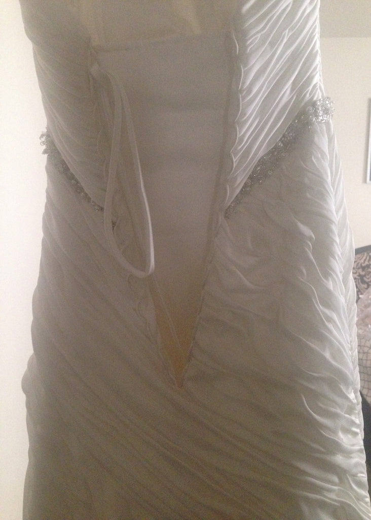 Brand new never worn. White-ivory in color and a dress size 6. Can be made to mermaid a style. Beautiful dress.