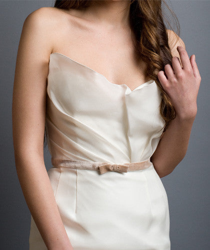 Made by Nona E Rose, this belt is made from beige velvet fabric boasting the perfect sized bow. This belt can add a delicate feminine touch to your wedding dress or your bridesmaid dresses.