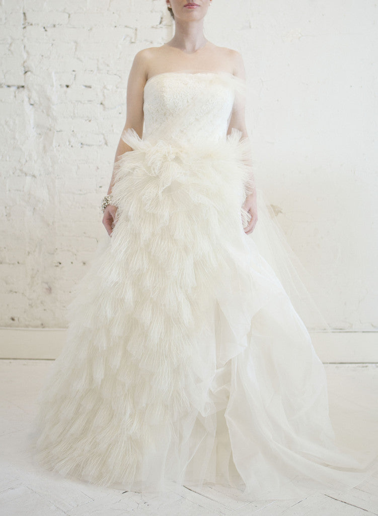 Vera Wang 'Eva' Feather & Tulle Gown